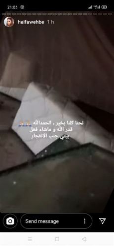 وأضافت هيفاء أنها كانت تصور مسلسلها “أسود فاتح” خلال وقوع الانفجار وكانت بعيدة عن موقع الحادث، إلا أن العاملات الفلبينيات في منزلها أصيبوا بجراح في الوجه والرأس بعد سقوط الزجاج عليهن وتم نقلهن لأحد المستشفيات ببيروت.